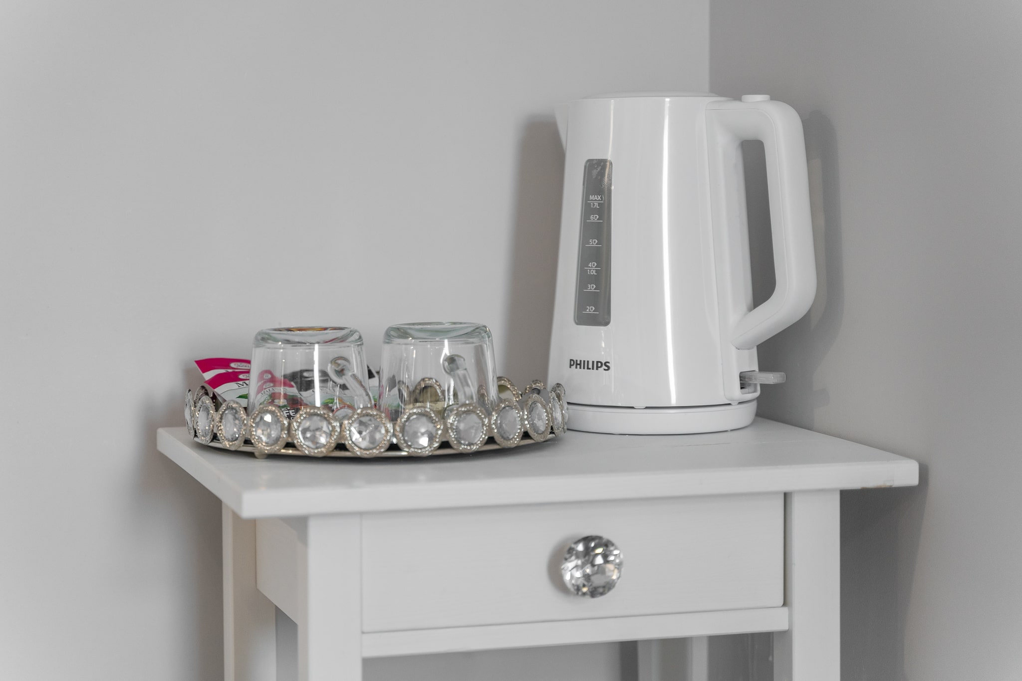 Dodatkowe udogodnienia obejmują lodówkę, czajnik z zestawem powitalnym, telewizor, dostęp do Wi-Fi, żelazko z deską do prasowania oraz dostępny wiatrak w sezonie letnim