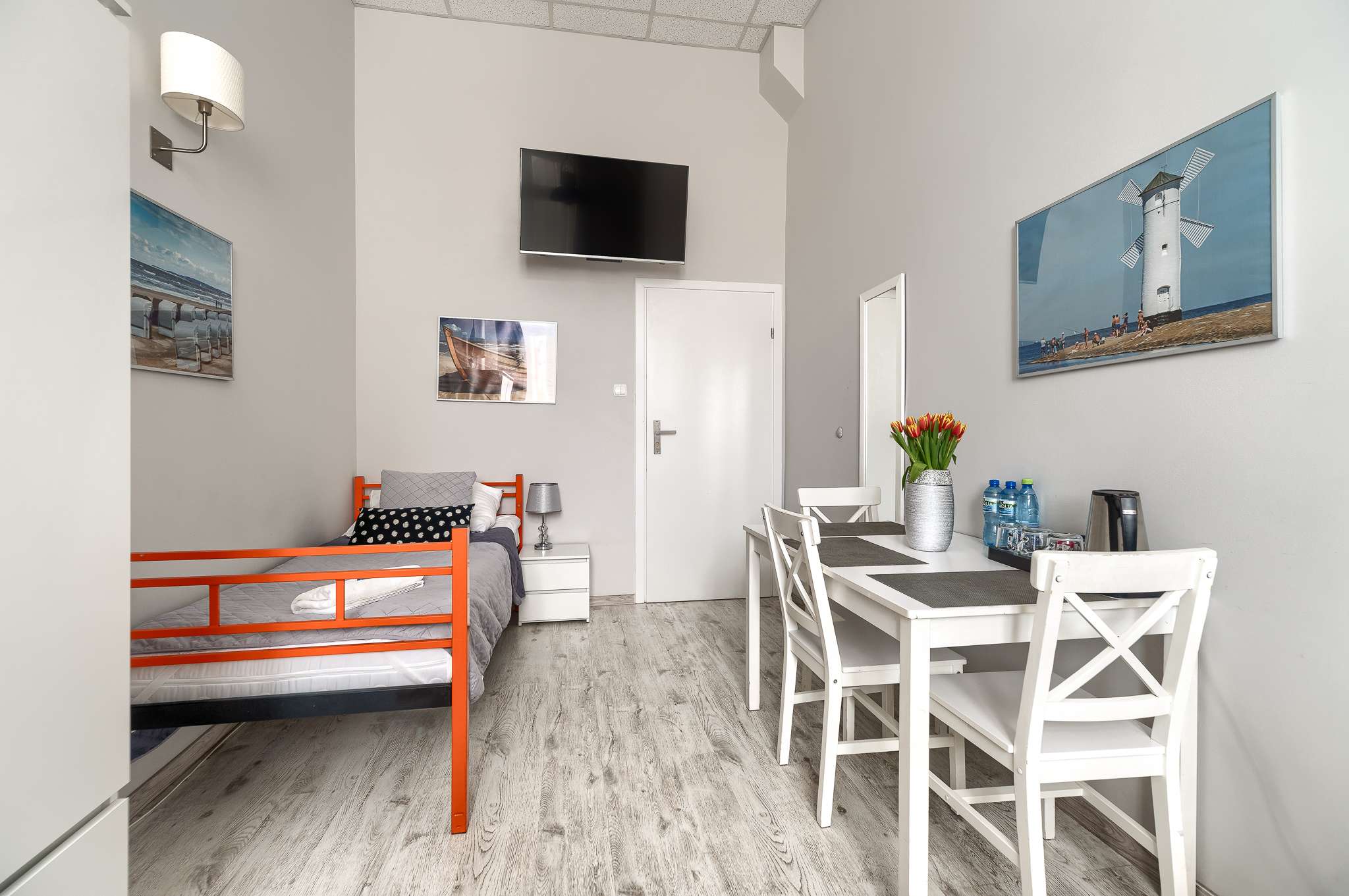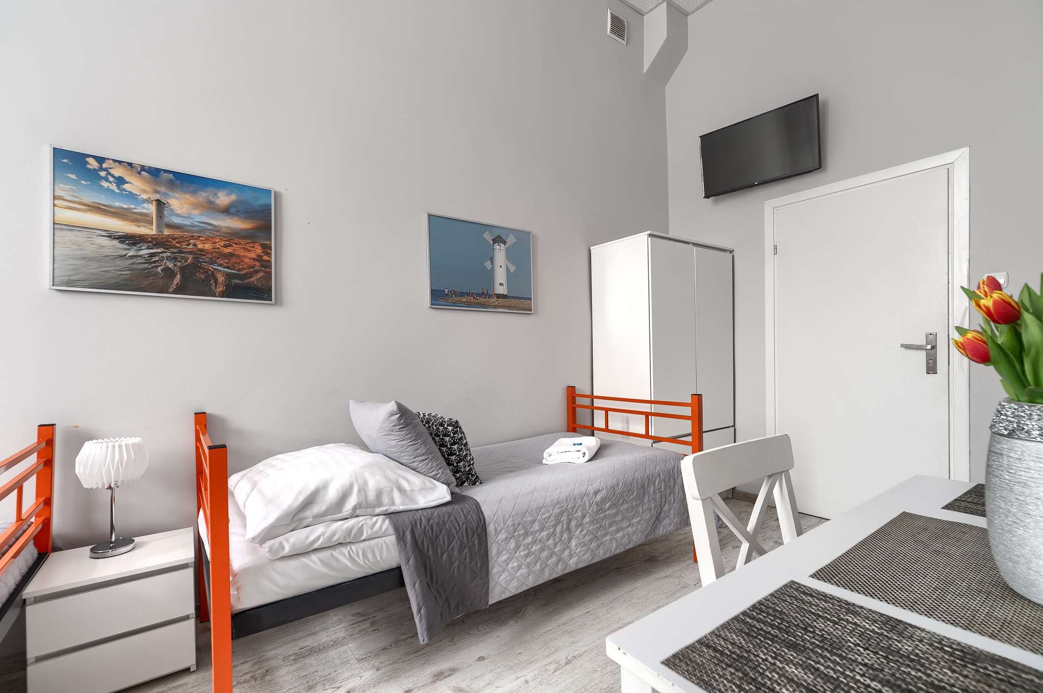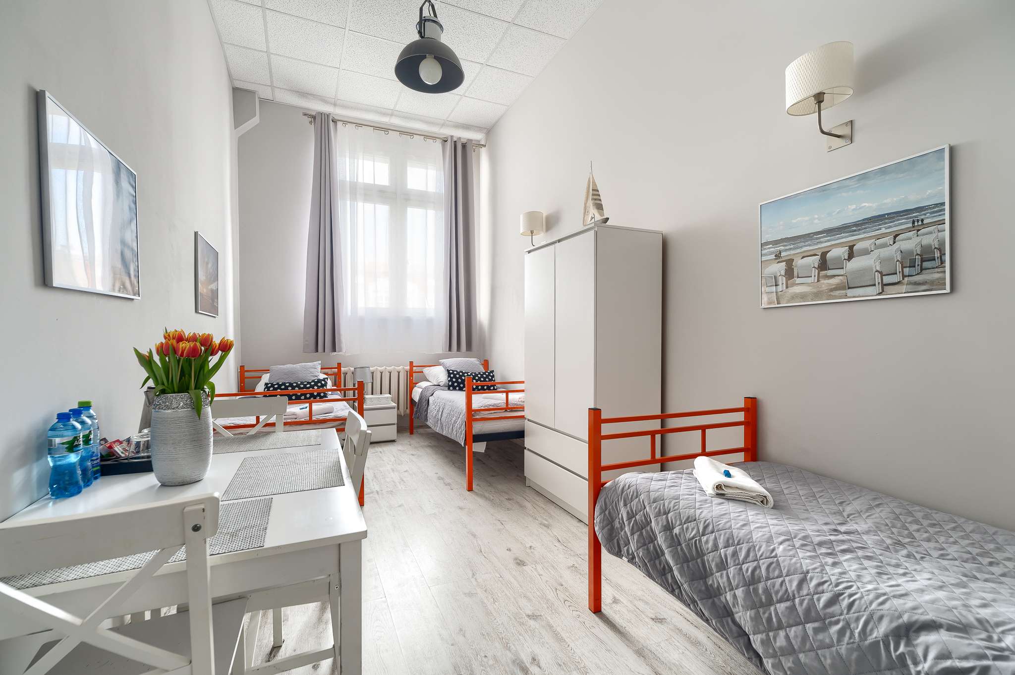 Pokój hostelowy z 3 łóżkami pojedynczymi to praktyczne i ekonomiczne rozwiązanie dla grupy znajomych, współpracowników lub rodzin, które podróżują razem i szukają wygodnego noclegu w dobrej cenie. Pokój jest prywatny, przeznaczony do wyłącznego użytku Gości, a trzy oddzielne łóżka z wygodnymi materacami zapewniają spokojny sen i komfortowy wypoczynek.