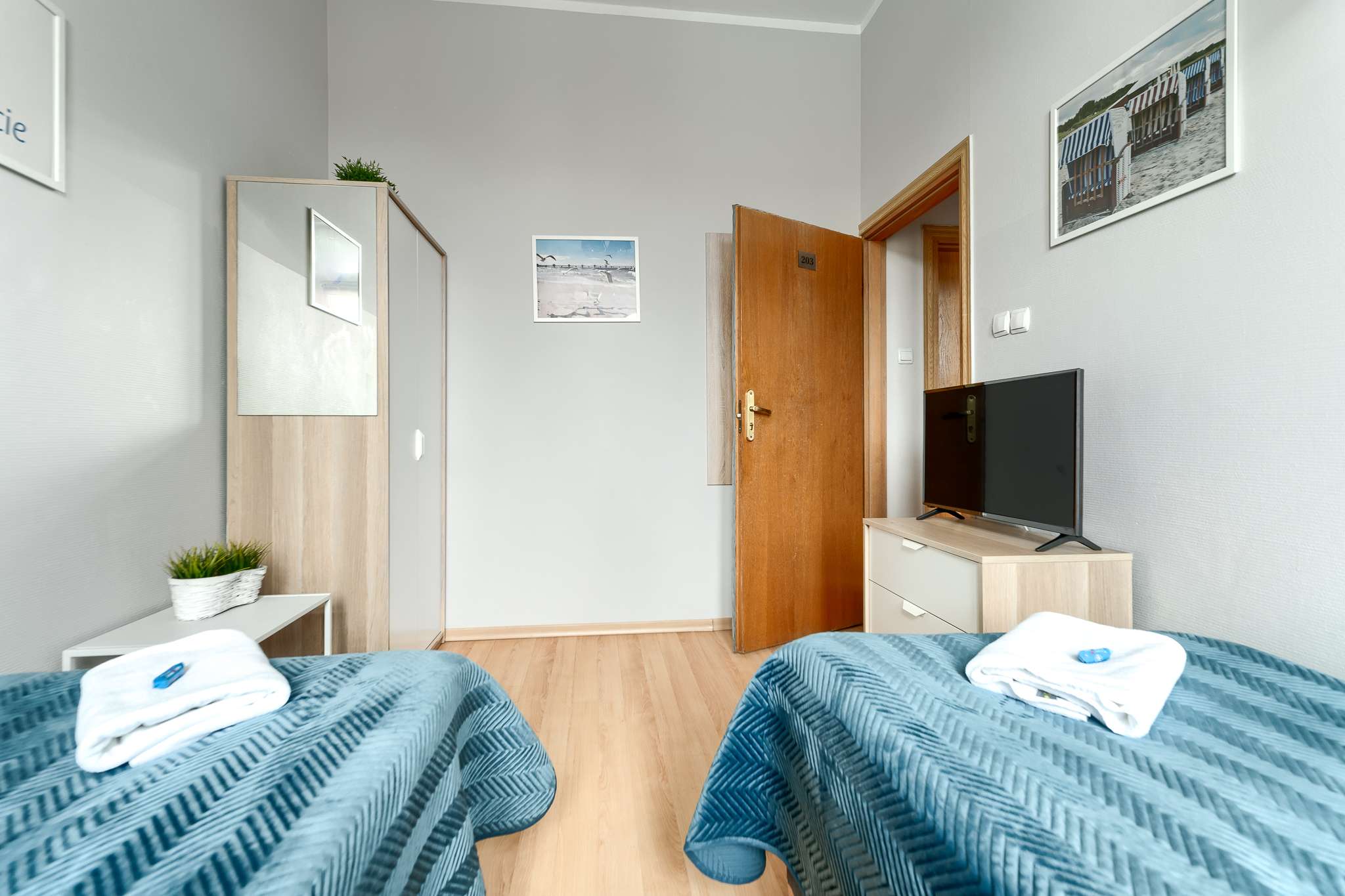 Pokój 2-sypialniany typu Comfort to przestronna propozycja dla rodzin lub grup znajomych, które potrzebują większej ilości miejsca i wygodnego układu łóżek. Składa się z dwóch oddzielnych sypialni – w jednej znajduje się łóżko małżeńskie, w drugiej dwa pojedyncze łóżka. Dzięki temu pokój zapewnia prywatność i komfort każdemu z Gości.